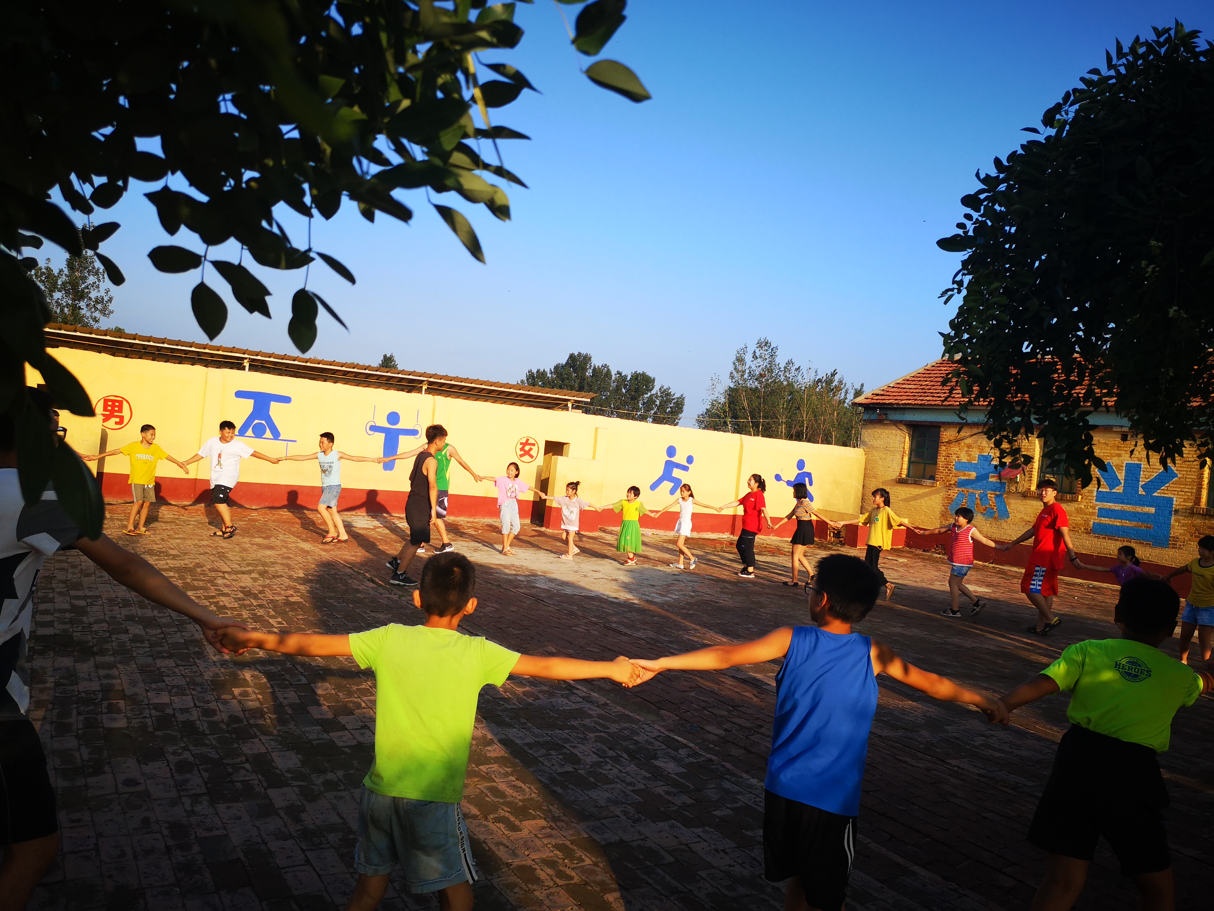 8月3日下午5点于吴街小学东侧操场,一群“小老师”和学生们传递着一颗篮球,荡漾着的是孩子们的笑脸,这就是多彩体育课的一部分。