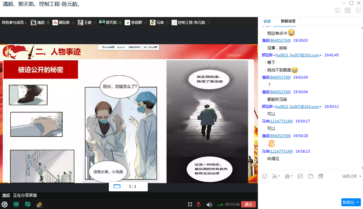 本次专题组织生活会主要分为三个环节。第一环节为看战“疫”数字,党支书潘超带领大家回顾整理了网上自疫情爆发以来全国的疫情情况,看着疫情确诊曲线趋于平缓,与会成员都表示了疫情防控攻坚战即将胜利的决心。