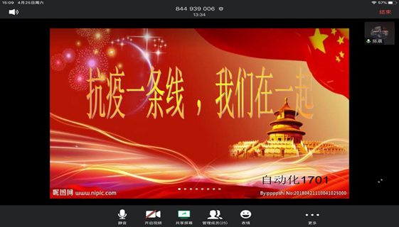 自动化专业系主任刘宝老师以班主任身份参与到了自动化1701团支部的“抗疫一条线,我们在一起”的主题团日活动中去。活动伊始,由团支部内的三名同学分别分享学习到的抗疫事迹,亓安然同学分享自己参与抗疫志愿服务的感受。随后,班主任刘宝老师也针对抗疫发表了自己的看法,并回答了同学们在考研与就业方面提出的相关问题,以帮助同学们在以后的学习生活中更加顺利。最后,支部书记任芷怡同学分享自己对中国共产党的领导力和中国特色社会主义制度在这次抗疫战役中的认识并进行了活动总结。