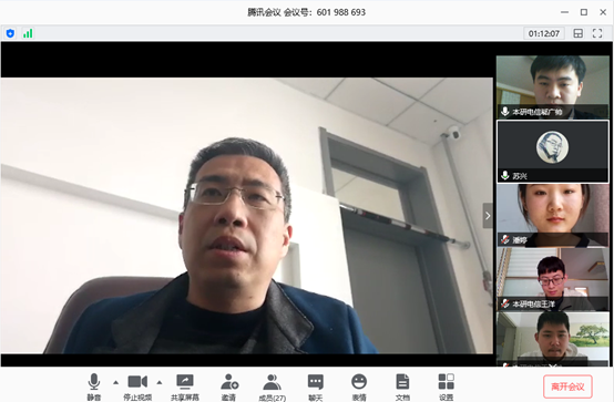 学院党委副书记苏兴老师应邀参加了本研19(电信)团支部的主题团日活动,在活动中多位支部成员主动搜集中美意韩等多国抗疫政策的相关资料,并分别录制视频或PPT讲解的形式进行分享,之后苏兴老师给大家分享了自己关于中国特色社会主义制度和资本主义制度的认识,支部成员在线上一起讨论和交流,举出了更多党带领人民度过难关的例子深刻表达了对祖国和党的热爱。