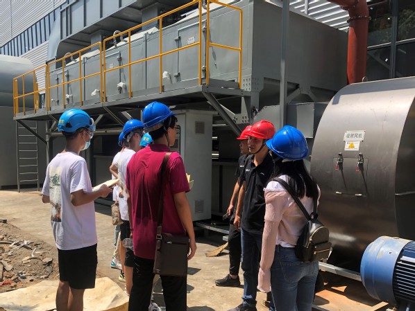 而后实践队辗转至南京高力工程机械有限公司,公司谢总经理带领全体队员参观公司施工起重机与智能垂直停车场成品以及生产车间。据总经理称,施工起重机一直作为特色优势产品为公司带来较高产值,而智能垂直停车场的开发起因则是他受到抖音等新媒体宣传途径的启发而进行自主学习探究、研发设计、投产。与此同时,企业面临的最大考验与困难在于如何有效绿色处理污水与废气,高力作为传统机械工业企业,在生产过程中会产生大量污水与废气,国家也十分重视特种设备的严格管控。为解决这一难题,谢总经理表示公司投资200余万元购入一全新的废气处理系统,新的废气处理系统可以将活性炭循环利用,大大节省了维修成本,并且在这基础上增加了二层保险,通过国内先进的RCO废气处理设备,将废气催化燃烧,最大程度减小污水废气对环境的不良影响。最后,谢总带领队员参观公司十几条自动化生产链,他强调正因政府近年大力扶持自动化产业,公司才能把握机会在政府的帮扶下将十几条自动化生产链投入生产,为江宁街道助力企业转型事业添砖加瓦。