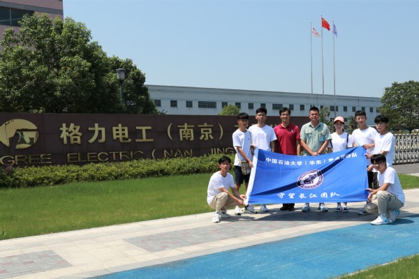 2020年8月17日上午,守望长江实践队全体队员以及辅导老师杜昆玉、团委书记姜飞到达南京市江宁区滨江开发区实地参观调研格力电工(南京)公司,由总经理办公室戴主管陪同进行讲解答疑。