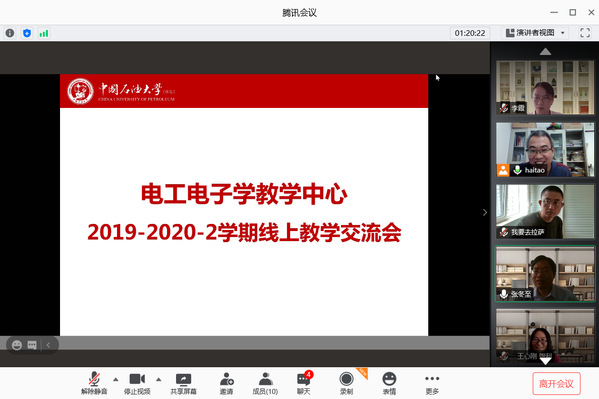8月25日,电工电子学教学中心召开全体教师网络视频会议,全面总结研讨2020年春,夏两学期的线上教学工作。会议由教学主任时海涛主持。