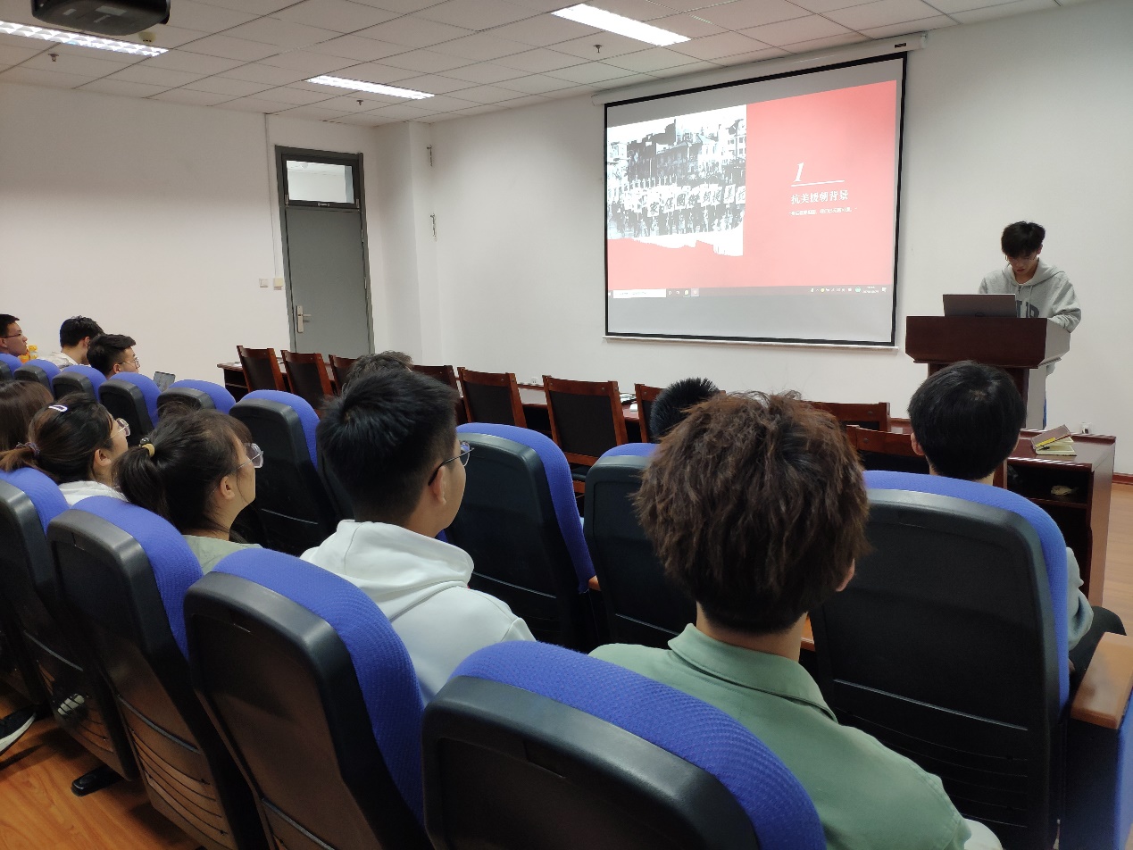 会议首先由简浩文同志做主题分享,他分别从抗美援朝的背景、典型战役上甘岭战役、抗美援朝的意义和战役英雄几个方面进行了详细介绍。伟大的抗美援朝战争,打出了新中国的国威和人民军队的军威,打破了美国军队不可战胜的神话,这是中国人民站起来后屹立于世界东方的宣言书,是中华民族走向伟大复兴的重要里程碑,对中国和世界都有着重大而深远的意义。随后由刘志同志带领支部成员共同学习了习近平总书记在纪念中国人民志愿军抗美援朝出国作战70周年会议讲话。他说道:“在和平年代成长的我们应铭记这段历史,以他们为榜样,时刻以祖国的强盛为己任,用知识武装自己的头脑,为中国的发展和壮大做出自己的贡献。”接下来,在支部书记的组织下,支部开展了有关抗美援朝知识的竞赛答题环节,这也迎来了本次活动的高潮。通过软件平台在线答题,大家纷纷通过手机扫码提交答案,在线排名不断更新。借助上年度的支部所获奖励,本次活动共设立了两个特别奖,答题前两名同志分别获得了最新上映的抗美援朝主题电影《金刚川》兑换券,其余前十名同志也分别获得了其他奖励,在会后分别收到了特制的活动奖励兑换券。本次在线答题竞赛形式,不但帮助支部成员对抗美援朝知识学习展开了有效的复习自测,还充分调动了成员参与支部活动的兴趣和热情。支部下半年将坚持探索开展生动丰富的组织生活,提高支部成员的参与感和集体向心力。最后支部成员共同观看了纪录片《风云儿女》的第一集,观看完后闫学哲同志感悟到:“作为中华的儿女,我们更应该好好学习,用知识打败未来的敌人,为祖国做出自己的贡献,不辜负祖国对我们的悉心栽培与无限期望”。