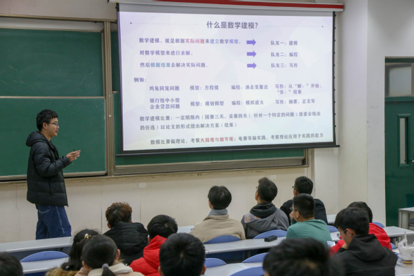 为增强学生对数学建模知识的了解,提高学生对数学建模比赛的积极性,我院于11月27日晚7点在西环202举办数学建模讲座。本次讲座由太阳集团tyc234cc数学建模协会主办,面向协会全体成员,讲解数学建模的相关知识,为准备参加2021年2月份美国大学生数学建模竞赛的学生给予理论指导。
