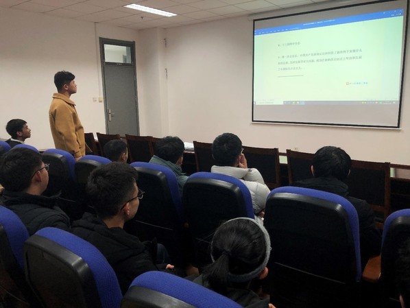 本次主题党日活动主要围绕“四史”中的党史学习开展,结合石油大学校史,意在加深同志们对党史校史的了解。活动分为两个部分,首先支部书记带领大家学习了中国共产党自成立以来的重大转折事件,并观看了石大易班发布的漫画版校史讲解视频。在熟悉相关知识后,进入党史校史知识问答环节。考虑到支部人数较多且本科生和研究生之间互不了解,因此答题环节添加了一点趣味性以增加成员之间的了解。由于会议开始前每人领取了一个随机号码,上一位答题成员可随机叫号挑选下一位成员答题,每人答题前均进行简单自我介绍,依次接龙,最终完成全部题目。题目涵盖党史、校史、重大会议等基本知识,形式包括填空、问答等。随机抽号的答题形式增加了活动的挑战性,增强了成员间的互动,答题过程中,书记也对问题涉及的知识点进行及时补充。