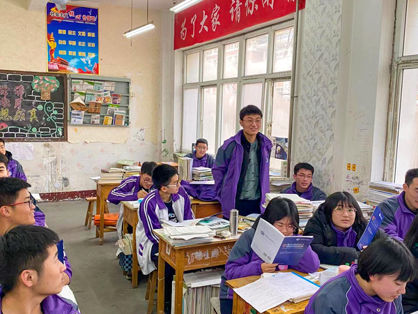实践队员积极响应当地政府疫情防控的相关要求,并多次与盐山中学的老师交流,了解学生们的学习情况以及对于未来大学的愿景,最终队员们来到了盐山中学重点培养的18级北大实验班进行招生宣讲。在班主任刘老师向学生们介绍完队员们此行目的后,学生们都展示出很高的积极性。