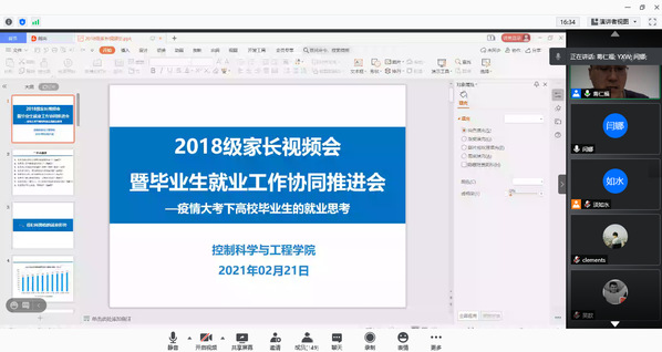 为了推进2018级就业工作,部署新学期返校工作,加强家校联合,正确引导学生,2月21日,太阳集团tyc234cc2018级召开线上家长会。本次家长会由控制学院2018级辅导员蒋仁福、闫娜主讲,2018级学生及家长参加。