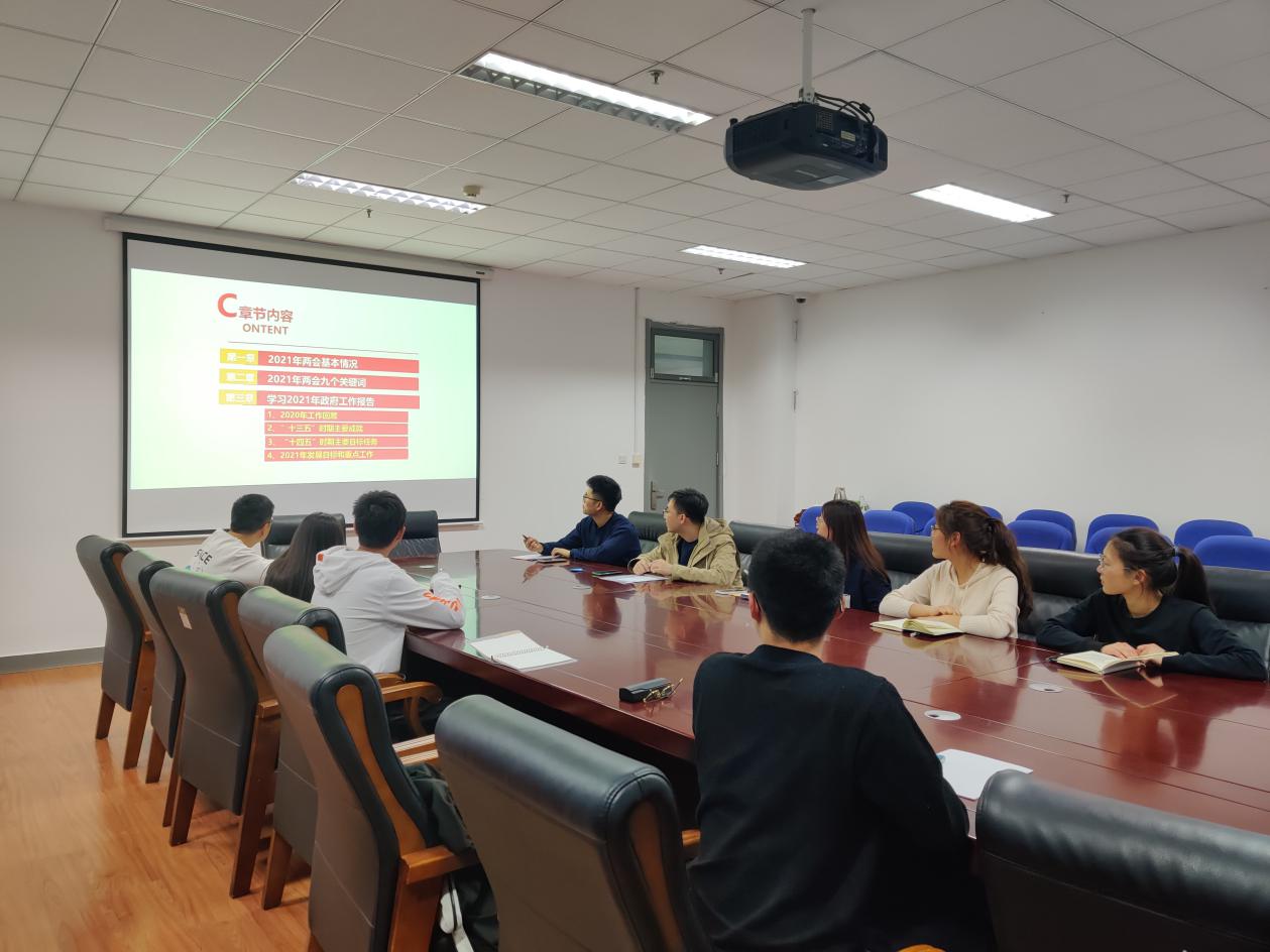 为深入贯彻党的思想,紧跟党的步伐,学习两会精神,传承红色基因,自动化专业第四党支部于2021年3月20日晚在工科E座1329会议室召开集体学习“两会精神”主题党日活动。支部书记蔡玉颖主持活动,所有党员悉数参加。