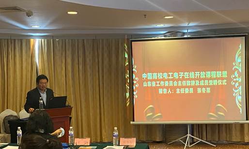 2021年4月18日,中国高校电工电子在线开放课程联盟(EOCU)山东省工作委员会副主任及委员受聘仪式暨“电子电气一流课程与教材建设”研讨会在青岛市召开。受聘仪式由我院电工电子学教学中心主任周兰娟老师主持,我院副院长、EOCU联盟山东省工作委员会主任张冬至教授代表山东省工作委员会做了工作汇报,从EOCU联盟介绍、联盟开展工作、设立工委情况、一流课程建设和重点工作规划等五个方面介绍了山东省工作委员会的工作,并向与会代表对山东省工作委员会工作的支持表示感谢。