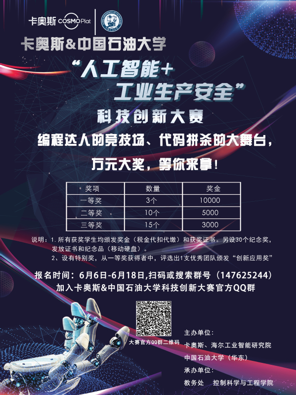 2、报名动员:6月6日-6月18日。有意报名者,请加入官方QQ群:卡奥斯&中国石油大学科技创新大赛官方群,群号:147625244。