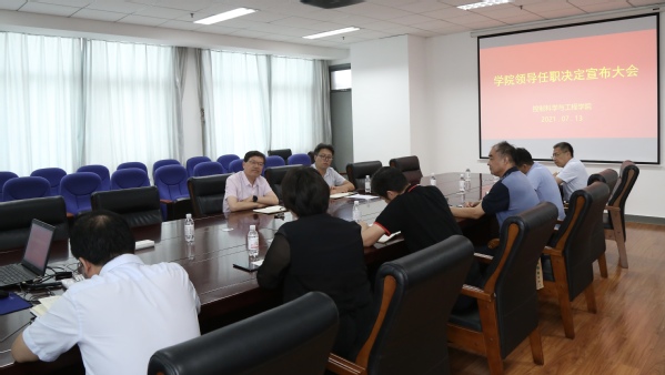 7月13日下午,学校在工科楼E座1329会议室召开控制学院领导任职决定宣布大会,学校党委副书记万云波、党委组织部副部长张希秋代表学校党委宣布学院新一届党政负责人任职决定。学院领导班子成员参加会议。会议由张希秋同志主持。