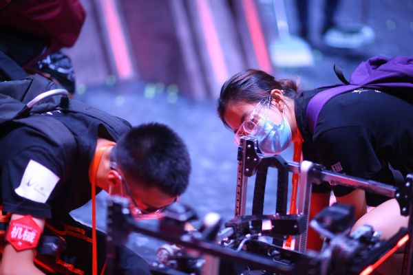 战队参赛队员在调试机器人