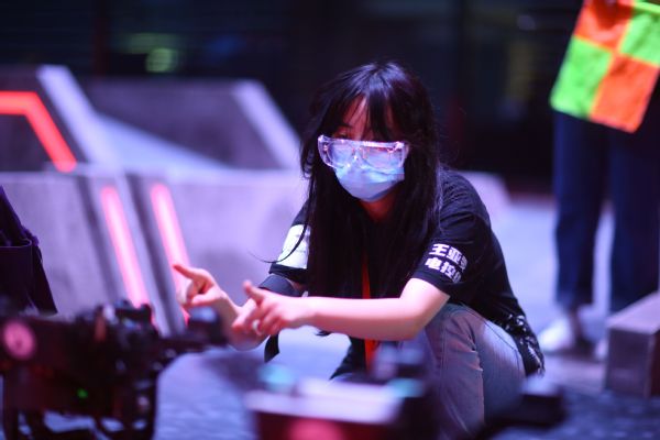 战队参赛队员在操控机器人