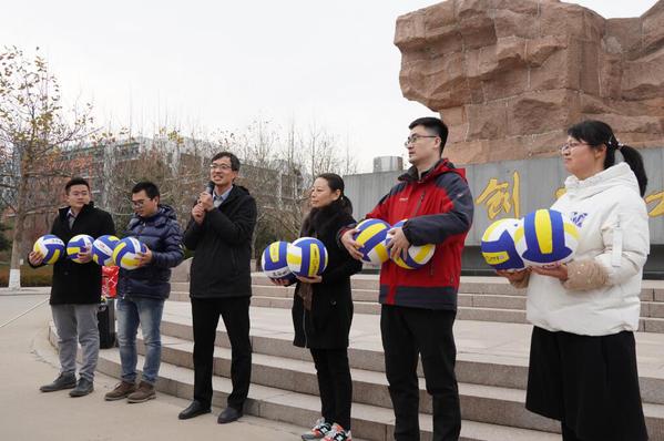 学院工会主席姜飞向各工会小组发放气排球,倡议开展冬季健身运动,并向教职工发布了年底举办新年联欢会的通知。随后在院旗的指引下,教职工队伍穿过新图书馆,登上小黄山。在深秋的寒意中,学院教职工一路欢声笑语,阔步向前。