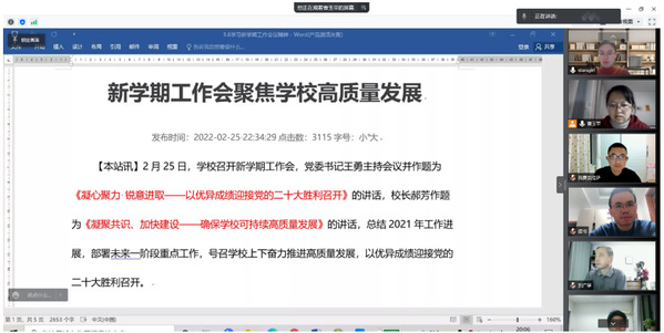 3月6日晚,电工电子学教学中心召开线上视频会议,专题学习学校新学期工作会议精神。会议由教学中心党支部书记曹玉苹主持,中心全体教师参加。
