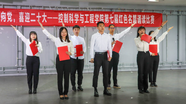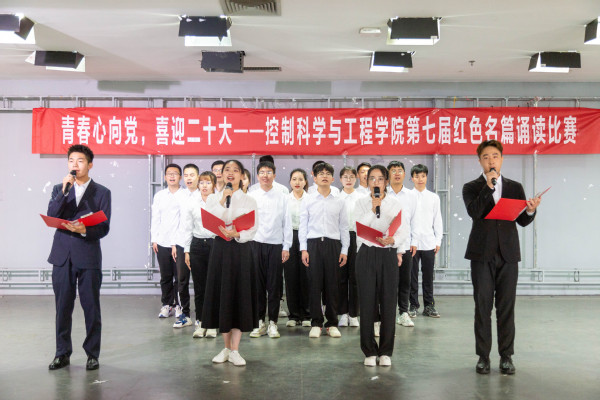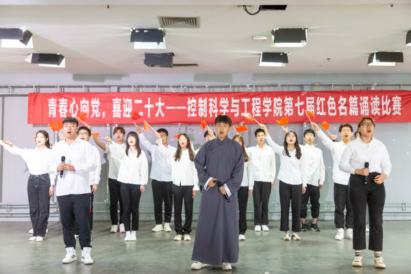 “我深深爱着的祖国, 搏动的心脏跳动着五千年的脉搏……”自动化专业第三党支部以一首高亢激昂的《我爱你,中国》拉开了比赛序幕,他们声情并茂、激情饱满的朗诵,与现场音乐背景曲调相互辉映,拨动着每一位观众的心弦。自动化专业第二党支部倾情朗诵李大钊先生的《青春》,倾诉着对党和祖国深厚的感情,彰显“为世界进文明,为人类造幸福”的决心。测控专业第一党支部、测控专业第四党支部、博士党支部回顾历史,《初心难忘,继往开来》、《百年光辉,盛世中华》、《祖国颂》用铿锵有力的声音叙述着百年光辉历程,用满腔的热忱歌颂着百年丰功伟绩。测控专业第二党支部带来的《盛世中华》情感饱满,层次渐进,展现出中华最美的姿态。《青春中国》这部耳熟能详的现代诗名篇由测控专业第三党支部一改传统,将现代诗朗诵与歌曲结合,宛转悠扬的歌曲与气势磅礴的朗诵将全场气氛点燃,赢得阵阵掌声。自动化专业第四党支部也大胆创新,带来的《觉醒年代之青春》将朗诵、情景剧、合唱相结合,用视觉、听觉的双重表现形式激发在场每一位观众的家国情怀。自动化专业第一党支部带来了《祖国,用青春的名义为你歌唱》,抒发了对祖国的赞颂、对美好生活的向往。各个党支部用饱含深情的朗诵抒发青年人对党、对国家的深深热爱,展现了我院学子良好的精神风貌。比赛的最后,声乐队带来红色歌曲串烧,将一首首经典红歌演唱,唱出青年学子建功新时代的坚定决心。