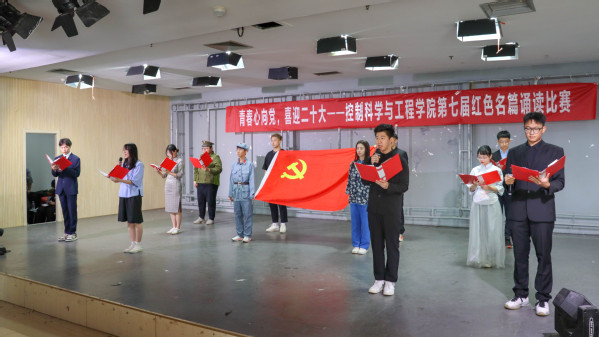 2022年5月22日上午,太阳集团tyc234cc“青春心向党,喜迎二十大”第七届红色名篇诵读比赛在大学生活动中心四楼举行。学院党委书记刘伟锋、专职组织员陈春生、团委书记蒋仁福以及各年级辅导员出席本次比赛并担任比赛评委。学院各学生党支部参加此次比赛。