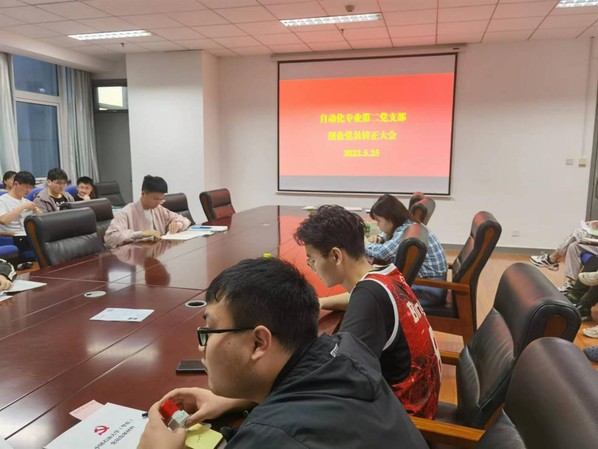 为响应党的号召,培养优秀党员,我院自动化专业第二党支部于2022年5月25日下午7点在工科E1329会议室召开支部大会讨论并表决预备党员单建民、孙海洋等十五位同志的转正问题。活动由党支部书记闫学哲同志主持,全体党员参与此次会议。