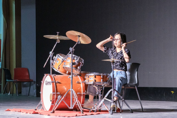 闫娜正在进行架子鼓演奏 郭成摄