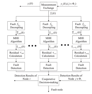 图5 基于传感器网络线性随机系统的间歇故障检测流程图