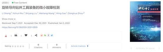 盛立, 牛艺春, 刘诗洋, 王伟亮, 高明, 周东华*. 旋转导向钻井工具装备的微小故障检测. 中国科学:信息科学, doi/10.1360/SSI-2021-0309.