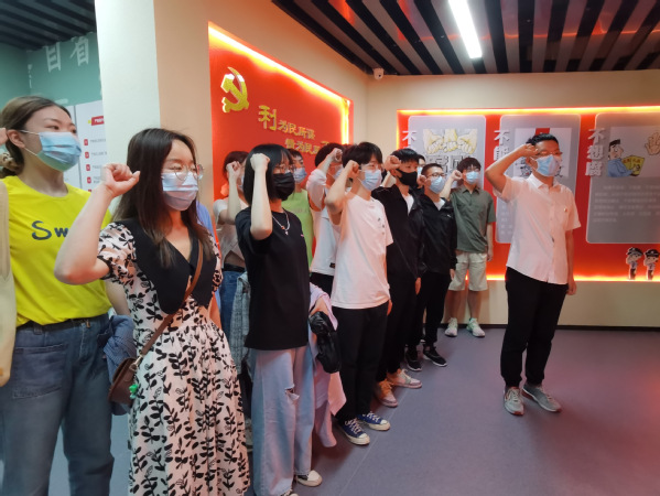 在毕业生党员代表闫学哲的带领下,新党员进行宣誓,毕业生党员重温入党誓词。“我志愿加入中国共产党,拥护党的纲领,遵守党的章程……”,铿锵有力的声音回荡在展厅内。毕业生党员周奉玄表示:“踏入工作岗位后要进一步提高党员意识,牢记党的宗旨,增强党性观念,认真做好本职工作,为深入贯彻全面从严治党作出自己的最大努力!”预备党员陈志钦表示:“先锋榜样们的事迹是我们宝贵的精神财富,我们要牢记肩上的责任与义务,争做中华民族伟大复兴征途上的栋梁!”