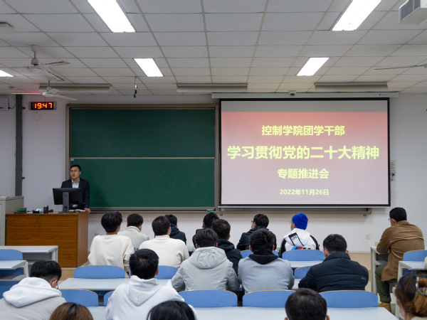 11月26日,学院在南教100举行学习贯彻党的二十大精神专题宣讲活动,学院团委书记蒋仁福,团委委员潘婷、孙志昊、周玥延出席活动,学院全体学生干部参加活动。本次宣讲由学院辅导员姜飞主讲。