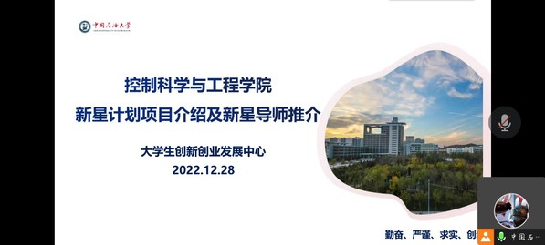 2021年12月28日,我院以线上形式召开“一院一品——新星计划”宣讲会暨思创赛动员会,学院第22期团校双创方向全体学生参加宣讲动员会。会议由学院大学生双创中心指导教师闫学哲主讲。