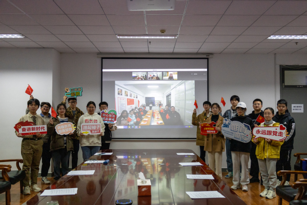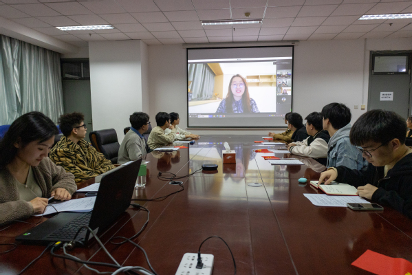 2023年3月14日晚,我院大学生易信发展中心与中国海洋大学管理学院融媒体中心开展交流分享会暨“学习贯彻党的二十大精神”主题活动。本次会议采用线上线下相结合的方式开展,我院参与人员在工科E1329会议室统一参会,通过视频会议的方式与中国海洋大学管理学院融媒体中心进行线上互动。我院2019级辅导员潘婷、大学生易信发展中心主要学生干部,中国海洋大学管理学院融媒体中心指导老师杨文可及主要学生干部参加本次交流学习活动。