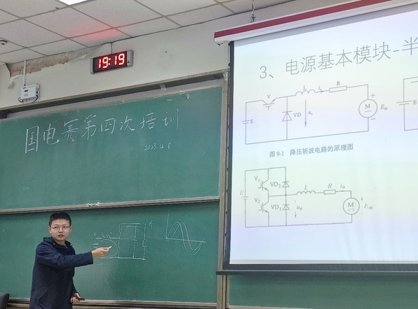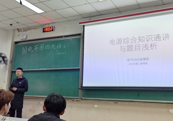 紧接着,张博研就电源的基本模块全面展开进行了详细的讲解介绍,最后,张博研根据自己丰富的经验趁热打铁向同学们仔细分析了历年赛题和综合测评题目,使参赛选手们切身实际地感受国赛题目。
