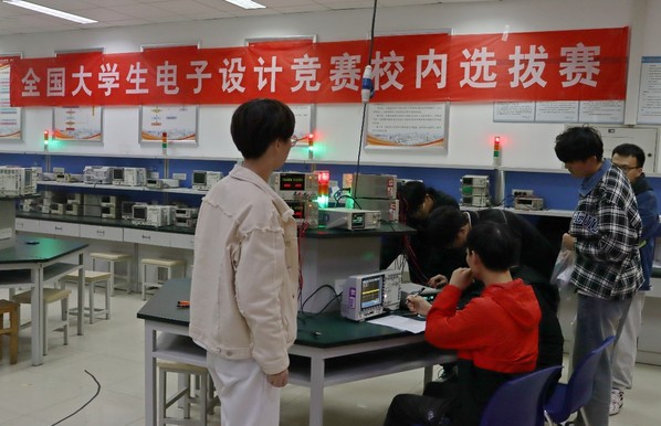 据了解,在此次选拔进行前,控制学院双创中心针对本年度即将迎来的全国大学生电子设计竞赛,面向全校意愿参赛学生进行了四次集中培训和指导。本次校内选拔赛共计约50支队伍参加,参赛题目面向所有赛道,并且具有较强的实践检验能力。