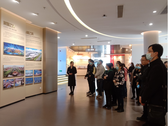 师生们首先参观了战略规划展厅,该展厅分为战略规划展示、青岛空间布局、解读西海岸新区三个版块,展示了新海岸新区近些年的发展成就和未来发展规划。随后,师生们参观“智慧之城”展厅,该展厅主要由蓝色空间、蓝色产业、蓝色生活、未来2030西海岸、回归海洋等板块组成。在这里,不仅展示出了西海岸未来发展的规划,而且还有3D影院、未来西海岸2030年体验空间等。师生们不仅对西海岸新区的空间布局、人文历史、城市规划有了更深入的了解,体会了青岛这座滨海城市的文化特质,还通过180度环幕、高清数字投影、互动感应等先进科技,切身感受未来生活。