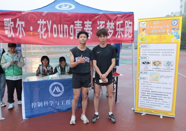 活动在控制学院团委书记蒋仁福老师、歌尔俱乐部副主席王乙惠的发言中拉开序幕,大家舒展热身,整备衣物后,热情开跑。本次活动设置0.54公里打卡赛道、1.08公里速度赛道和54min耐力赛道。下过雨的田径场热度不减,三个赛道同时开启,选手们纷纷起跑、冲向终点。控制学院辅导员姜飞老师步伐矫健,沿着跑道一路驰骋,引得选手们阵阵欢呼。“好久没有跑的这么畅快了!”参赛选手们说道,“我深深感受到了属于我们青年人的热血和活力。”“跑步的过程,就是不断进取的过程。”“一路享受清新活力的感觉。”