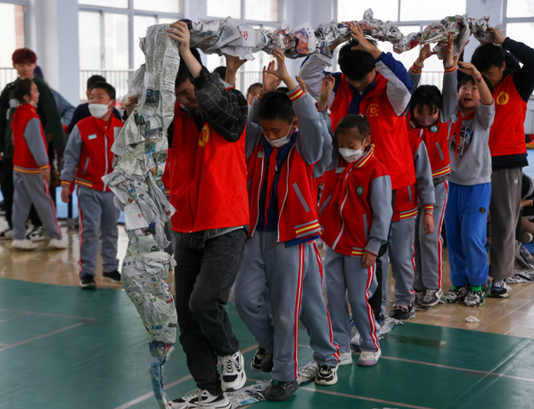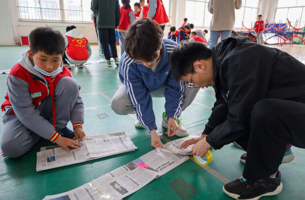 随后,为了让小朋友们切实体会团结合作的重要性,两院学生带领大家进行素质拓展。在游戏“抱成团”中,大小朋友们根据口令迅速反应,选择合适对象紧紧凑在一起;在游戏“报纸车轮”中,大家分为两组,各组齐心协力,用报纸、胶带等制作大车轮,并集体在车轮中行走指定距离。“‘抱成团’进行时我的手心一直在出汗,”北庄小学学生苗惜祺说到,“一听到口令我就马上拉住附近的同学,大家都在紧张的算数,确认算对后我们就紧紧拉住手,到结束时还感觉意犹未尽呢!”控制学院高笑言讲到,“在‘报纸车轮’环节,看到大家兴奋、投入的样子我很感动,尤其最后两个车轮都顺利到达终点,那一刻大小朋友的欢呼和笑容真的很有感染力!”