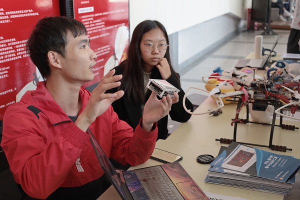 与此同时,RPS战队成员为同学发放科创宣传册,结合宣传册内容,为学生详细阐述机甲大师以及相关专业知识、介绍我校RPS战队的优秀战绩,接着与同学们一起操控机甲战车,激起同学们的兴趣,体验RPS机甲带来的科创魅力。各主办方成员耐心且热情地回答同学们的问题,为同学们介绍相关科创知识,活动现场气氛火爆,赢得同学们的一致好评。
