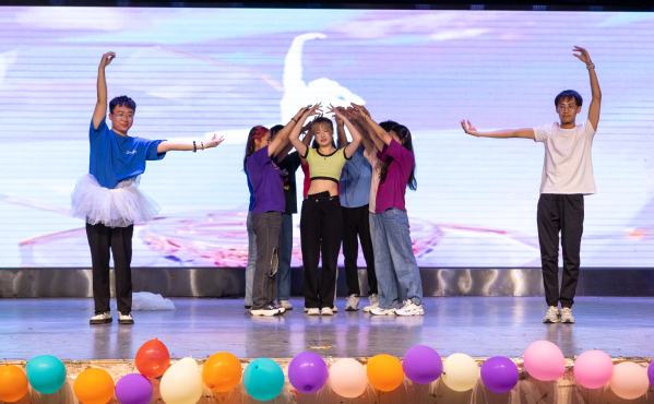 颁奖仪式结束后,意外乐队带来的节目《New boy》正式拉开晚会序幕。本研(电信)1901班朗诵《颂青春》传递出青年人的蓬勃朝气与报国之志;唐雯、周玥延等同学带来舞蹈串烧《快乐魔法》将全场点燃;苏敏、高笑言等同学的《把时光唱给你听》用歌声追怀大学时光,2019级辅导员曾菲、潘婷也惊喜亮相,与同学们共唱《光阴的故事》;测控1903班表演的小品《反诈银行》给大家带来欢声笑语的同时,更是警醒大家提高反诈意识,保管好自己的钱袋子;董震涛、赵云鹏带来的相声《我要穿越》令人捧腹;自动1904班带来的小品《新闻趣谈》以纪实的方式再现了大家学习生活中的真实一面,更有被子起舞的滑稽场面。
