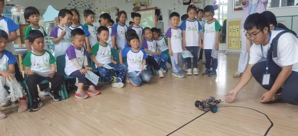被邀请到幼儿园内示范小车操作,发挥教育普及和科技传播双重效应,也展现出控制学院在创新人才培养和社会服务方面的优势。整个过程中,学生们不仅向孩子们生动形象地介绍了这款智能小车的创新性,还利用亲身演示让孩子们更好地理解并感受到科技创新的魅力和意义,传递了一种好奇、发现、探索、创造的精神。还给孩子们进行了趣味演示,让他们可以更加直观地感受到这款小车的神奇之处。