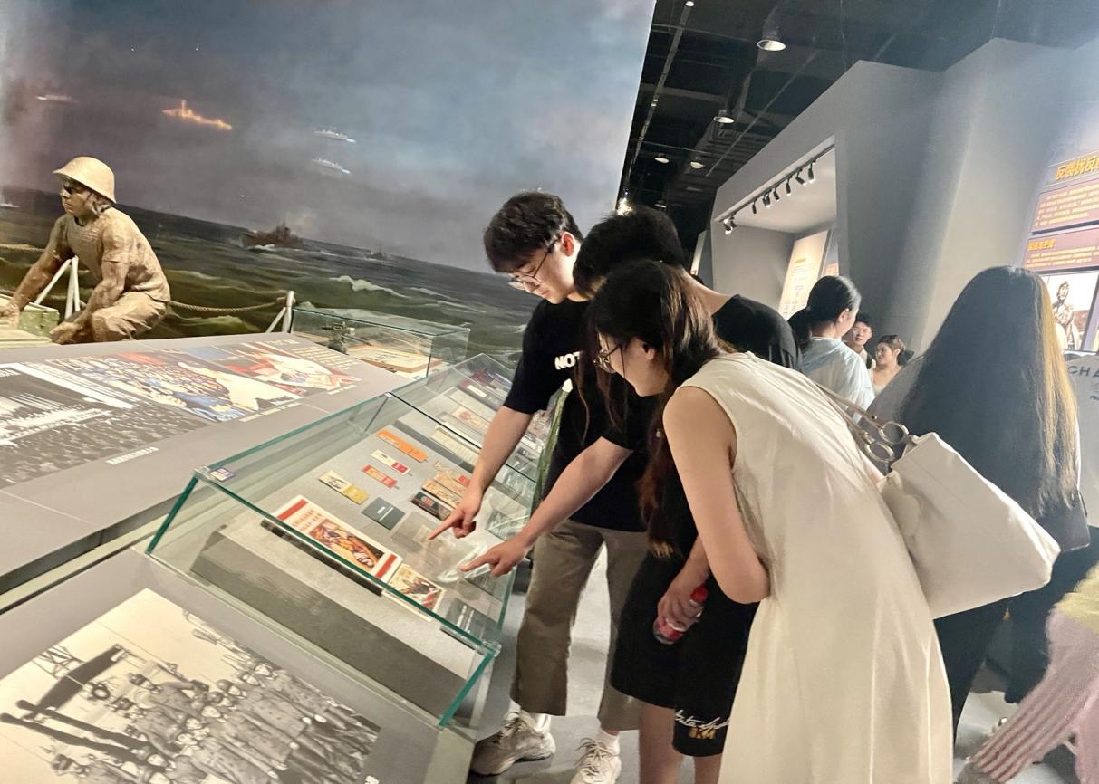 党员同志们在参观馆内陈列的展品(摄影:郝洋)