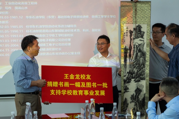 9月27日下午,学校70周年校庆太阳集团tyc234cc发展论坛于E1329顺利举行,学院77级、81级、83级、84级、86级、89级、2000级、2004级、2005级、2006级、2007级校友代表出席论坛,论坛由学院党委书记刘伟锋主持。刘伟锋代表学院发表致辞,欢迎各位校友、企业代表共襄盛典、齐话发展。力信测量(上海)有限公司、山东岩芯能源技术有限公司、和利时科技集团有限公司、云南联合视觉公司、山东能特异能源科技有限公司、校友杨敬杰等向学院捐赠多项奖助学金、奖教金,这些捐赠将为学院的研究项目和学生发展提供重要支持。同时,学院为一直关心学院发展的企业颁发战略合作奖杯。77级校友、原中石化输油管道山东省协调办公室主任王金龙向学院捐赠书画——《巍峨峥嵘》,以此表达对学院的美好祝愿。