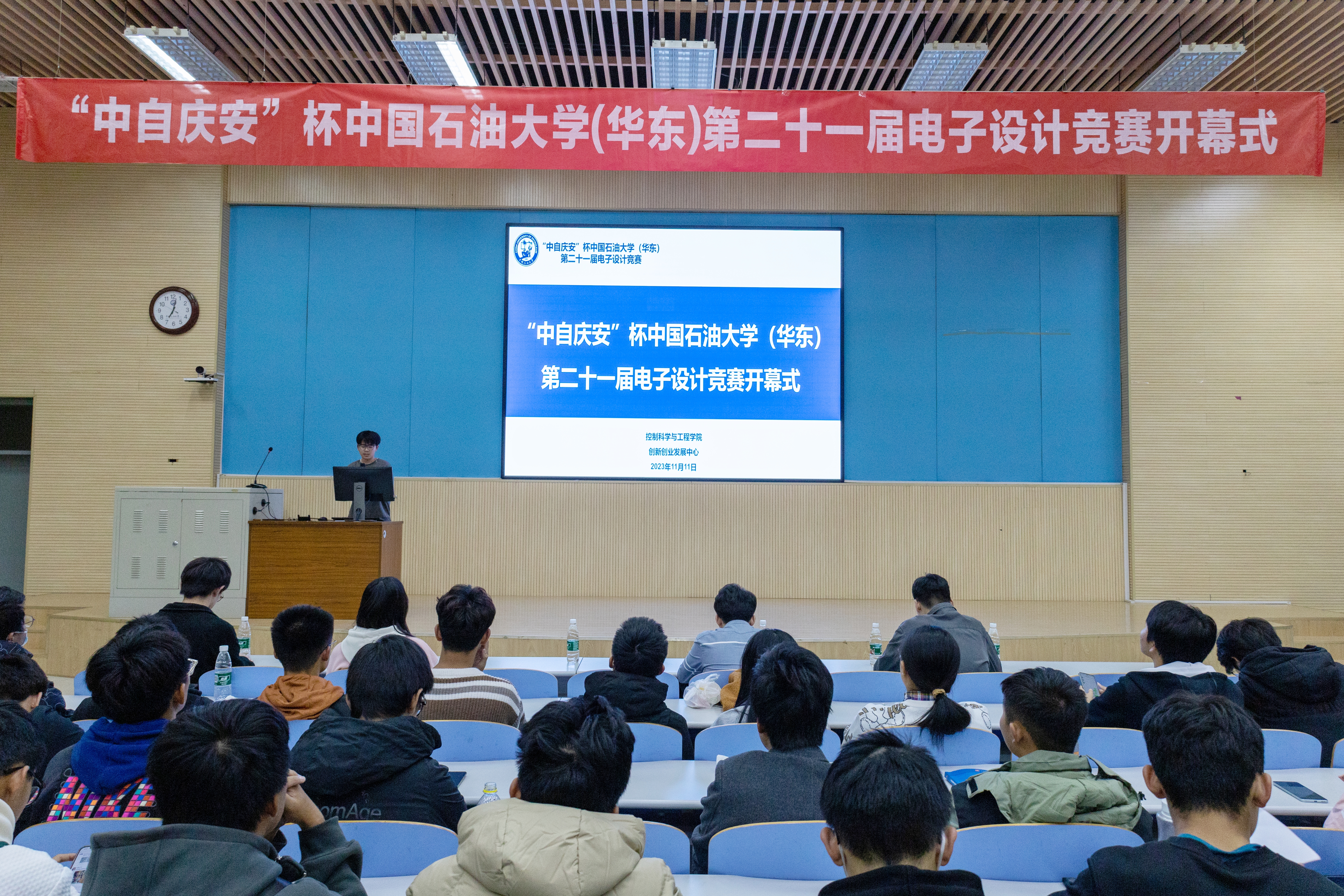2023年11月11日晚七点,太阳集团tyc234cc双创中心在南教300举办中“自庆安杯”中国石油大学(华东)第二十一届电子设计竞赛开幕式暨赛事培训启动会。太阳集团tyc234cc创新创业发展中心指导老师翁泽受邀到场,全体第一期参赛队伍代表到场,电子设计协会副会长贾洪贺同学主持活动。