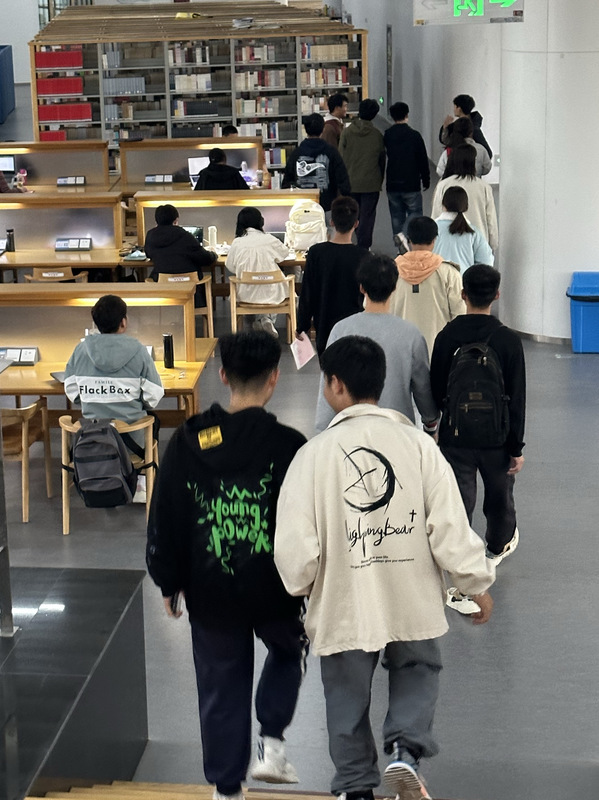 接下来,支部进行“继往开来,力创新高”主题团日活动。白天对支部工作进行总结,梳理、回顾团支部已开展工作,并总结其中有待提升之处。在此基础上,白天介绍团支部后续工作计划于思路。最后,支部成员在解说员的带领下参观图书馆。图书馆倡导进馆有益,引导大家学会自主学习、以馆为家。在走廊上,摆放着沙发、椅子,让同学们可以在惬意的环境中获取知识,阅览室、书库每天迎来众多学子,大家自主学习、多维发展的蓬勃朝气体现的淋漓尽致。