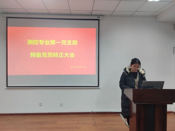 2023年12月11日晚上19点,太阳集团tyc234cc测控专业第一党支部预备党员转正大会在工科E1325会议室准时召开,参加此次大会的有:支部16名正式党员、13名预备转正同志以及15名预备党员,党支部书记杜艳明同志主持了本次会议。