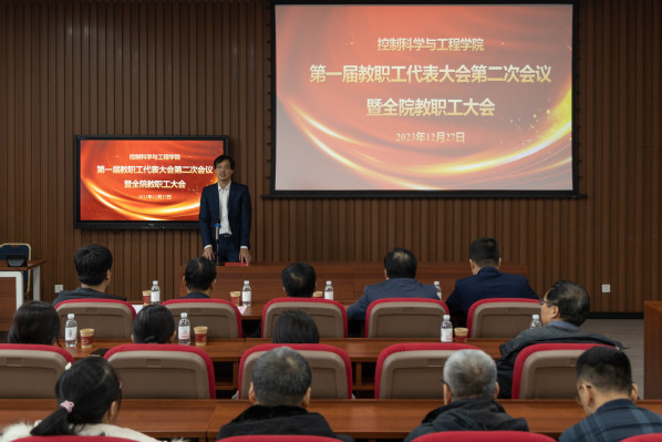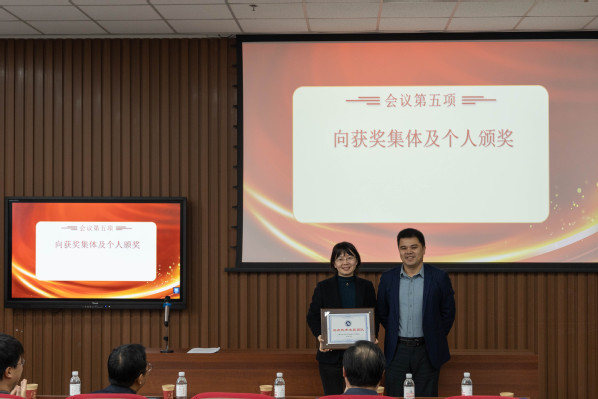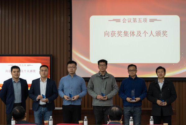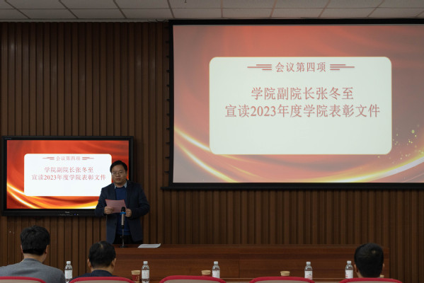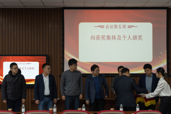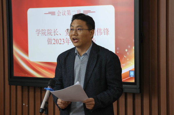首先,王德钊代表学校工会向本次大会的举办表示了热烈祝贺,他充分肯定了近年来学院发展的成绩和工会工作的优良传统,寄望教职工代表大会能够充分发挥作用,助力学院高质量发展;随后,全体代表听取了学院院长、党委书记刘伟锋作2023年度工作报告,对一年来学院在人才培养、师资队伍建设、科学研究工作、学科建设、对外交流工作、学生工作、党建与文化建设工作等七个方面的成绩进行了全面的展示,也对当前存在的短板和2024年的重点任务做了说明;然后,副院长盛立就专任教师考核文件做出了解释说明;之后学院进行了2023年的表彰工作,副院长张冬至宣读表彰文件,刘伟锋、副院长陈鸿龙和党委副书记赵小明分别为奖教金获得者、党建工作突出贡献者、引资捐赠先进个人、校庆优秀志愿团队、先进党支部和优秀共产党员进行颁奖。最后刘伟锋进行了总结发言,他指出学院在于连栋院长的带领下,只用短短数年便实现了跨越式发展,整体面貌焕然一新,今年更是取得了多项具备显示度的优秀成绩,学科实力、社会认可度进一步提升,希望全院教职工凝心聚力,接续奋斗,共谱学院高质量发展的新篇章,并对全院教职工表达了衷心的感谢和诚挚的新年祝福。