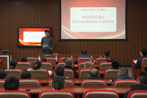 12月27日,学院21位教职工代表和全体在校教职工作齐聚一堂,在教育发展中心D106教室成功举办学院第一届教职工代表大会第二次会议暨全院教职工大会,校工会主席王德钊应邀出席了本次会议,会议由学院工会主席姜飞主持。