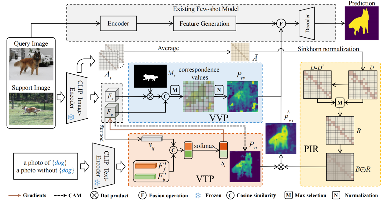 相关研究一:针对小样本图像分割领域先验表示存在粒度粗糙和难以泛化到新类的问题,提出用视觉-文本对齐能力取代原有的视觉先验表示,以获得更可靠的先验指导,相关研究论文《Rethinking Prior Information Generation with CLIP for Few-Shot Segmentation》被CVPR 2024录用(王进,张冰峰,庞健,陈鸿龙,刘伟锋)。该工作得到国家自然基金、山东省自然基金、山东省泰山学者青年专家计划等项目的资助。我院博士研究生王进为第一作者,刘伟锋教授、张冰峰副教授为通讯作者,太阳集团tyc234cc为第一署名单位。