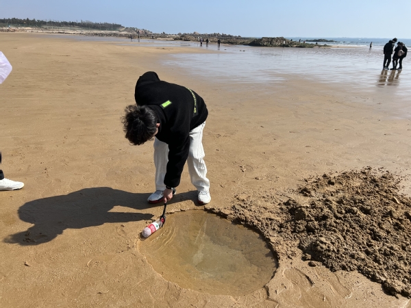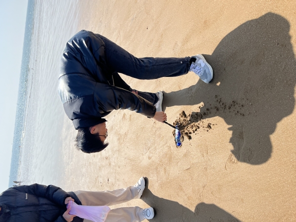 接着,团支书为大家发放了本次活动的道具:手套、垃圾钳和垃圾袋,并向大家介绍了第二个活动:用手中的工具捡起沙滩上的垃圾,体会雷锋精神。大家分工有序,有的负责钳子夹起垃圾,有的负责收集垃圾,有的负责活动的后勤。活动进行得十分顺利,不仅增强了同学们互助、合作意识,而且使大家体会到前辈公而忘私、无私奉献的精神。
