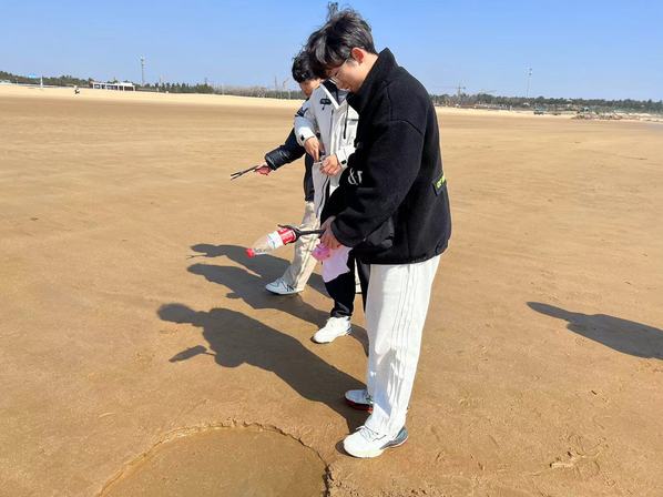 图1 同学们清理沙滩上的垃圾 兰翔摄