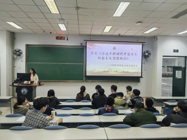 会议伊始,控制学院学生会副主席汤依伶介绍了本次学习以“思想旗帜”为主题,详细阐述了习近平新时代中国特色社会主义思想的核心内容。围绕“两个结合”、“六个必须坚持”、“十个明确”、“十四个坚持”、“十三个方面成就”等重点展开学习研讨,同学们深刻领悟到在党的坚强领导下,中国在政治、经济、军事等各个领域上飞速发展,不断取得显著成就。随后,青年团员们依次上台发言,分享他们对本次学习的思考与感悟,互相启发、交流,共同成长。