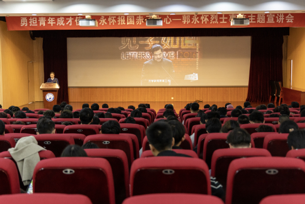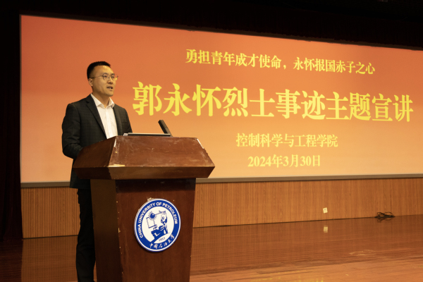 为了缅怀革命先烈,学习烈士光荣事迹,打造筑牢精神之基,铭记初心使命。2024年3月30日,在学校党委组织部的指导下,我院在逸夫楼礼堂举办了“勇担青年成才使命,永怀报国赤子之心”——郭永怀烈士主题宣讲会。郭永怀事迹宣讲团成员、荣成市博物馆宣教部副主任杜雨为我校各院部教师代表、学生代表等近600人进行宣讲,控制学院团委书记蒋仁福主持本次宣讲会。